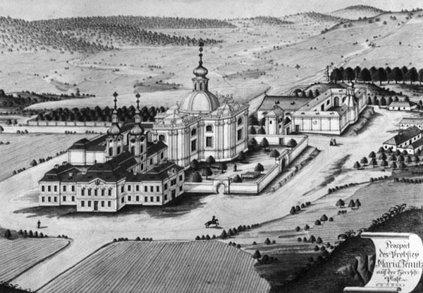 Podoba areálu Mariánské Týnice (nebo také Týnec) z roku 1785, Foto: Wikimedia Commons / volné dílo