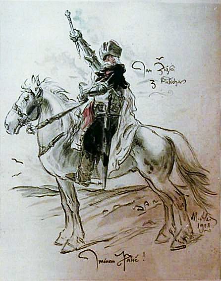 Nejslavnější husitský vojevůdce na populární kresbě od Mikoláše Alše z roku 1908, Foto: Wikimedia Commons / volné dílo
