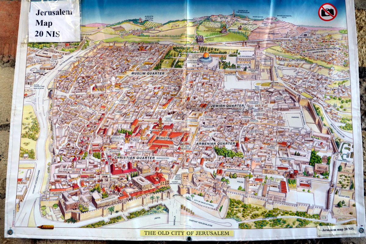 Mapa Jeruzaléma umístěná v ulicích Starého města