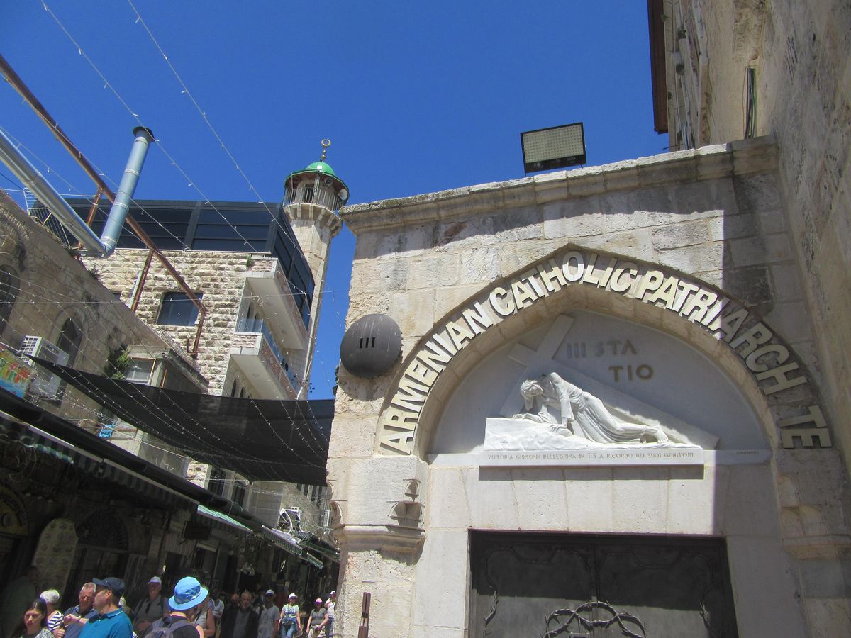 Teprve za odbočením rovného úseku Via Dolorosa prudce doleva nacházíme zastavení třetí. Každé je vzorně číslované, takže si můžete lehce kontrolovat, jestli jste některé z nich nepropásli. Tady postavili malou kapličku s mramorovým reliéfem nad vstupními dveřmi přesně v místě, kde Kristus poprvé klesl pod tíhou neseného kříže. A znalci Bible dobře ví, že cestou na Golgotu se mu to přihodí ještě vícekrát. A hned vedle kapličky stojí arménský kostel Panny Marie Bolestné. Ten název nevznikl náhodou, protože právě tady se odsouzený setkal se svou matkou Marií. Jsme u čtvrtého zastavení. Je evidentní, jakou bolest musela za takových okolností při pohledu na těžce zkoušeného syna matka prožívat. Celkový dojem z jeruzalémské křížové cesty je sice na jedné straně tragický a plný utrpení, na straně druhé i naděje, že se jednou vše v dobré obrátí.