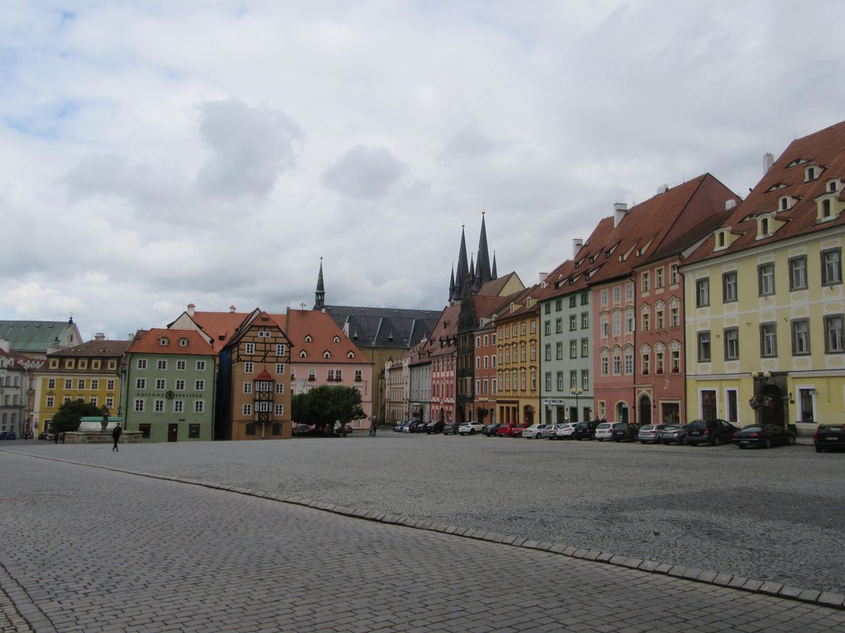 Chebské náměstí se skupinou domů Špalíček, za níž se nachází dům s místem Valdštejnova skonu