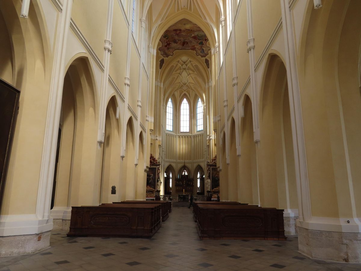 Interiér katedrály Nanebevzetí Panny Marie a svatého Jana Křtitele v areálu cisterciáckého kláštera, na přestavbě původně gotického kostela se podílel barokní architekt Jan Blažej Santini-Aichl