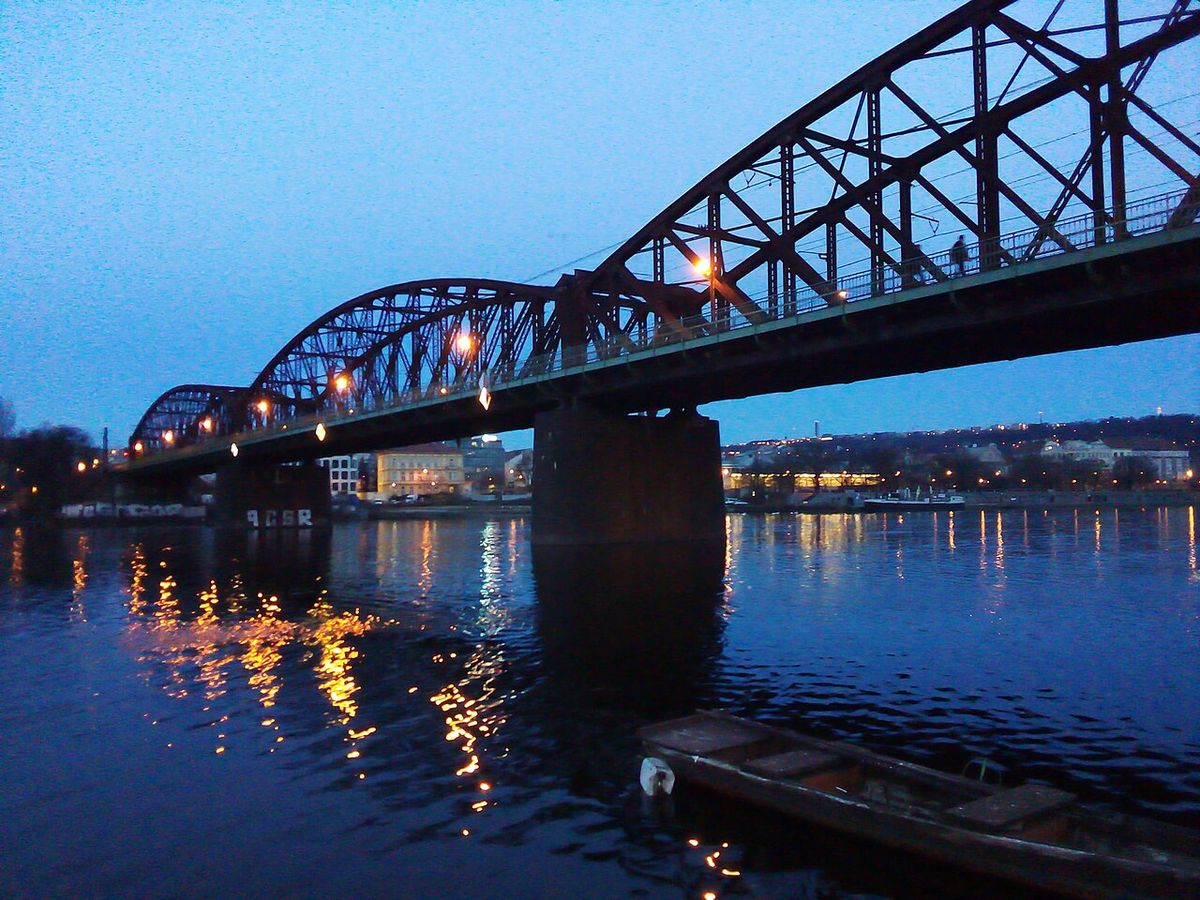 Ve srovnání s mostním předchůdcem jsou tyto pilíře vyšší, ty staré se po uložení každého ze tří nových hlavních, sedmdesát metrů dlouhých, příhradových nosníků zbouraly. Stavitelům „nového“ mostu se už v roce 1901 povedl husarský kousek. Během jeho výstavby neomezili lodní dopravu na Vltavě ani na okamžik a tu železniční po původním mostě jenom na šedesát hodin. Přestože se na obou březích pracovalo v různých výškových úrovních. Asi si každý dovede představit, že stavět mostní konstrukci za situace, kdy vedle vás sviští projíždějící vlaky, není úplně ideální. Tehdy moc nesvištěly, ale stejně!