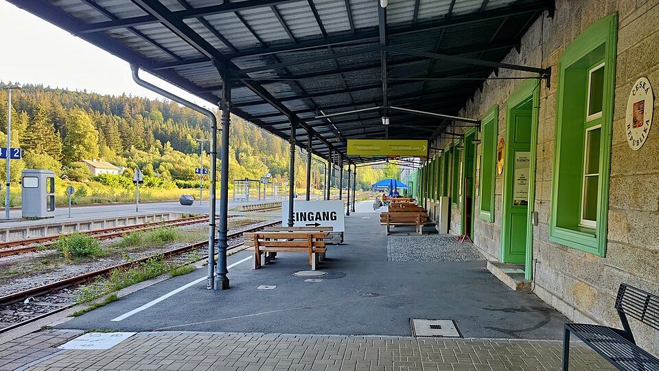 Dnes bereme jako samozřejmost, že za naší českou Železnou Rudou přejíždíme její místní část Alžbětín a teprve za ní začíná Bayerische Eisenstein, tedy bavorská část spřáteleného dvojměstí. Při jízdě po silnici hraniční přechod ani nepocítíme, zato příjezd vlakem skýtá jedno velké překvapení. Všechny české osobní vlaky i rychlíkové spoje tady končí a ty německé začínají na společném nástupišti. Hraniční nádraží je unikátní v tom, že bylo kdysi postaveno přísně symetricky na obou dvou stranách česko-bavorské státní hranice. Po druhé světové válce tady logicky provoz na dlouhá desetiletí utichl.