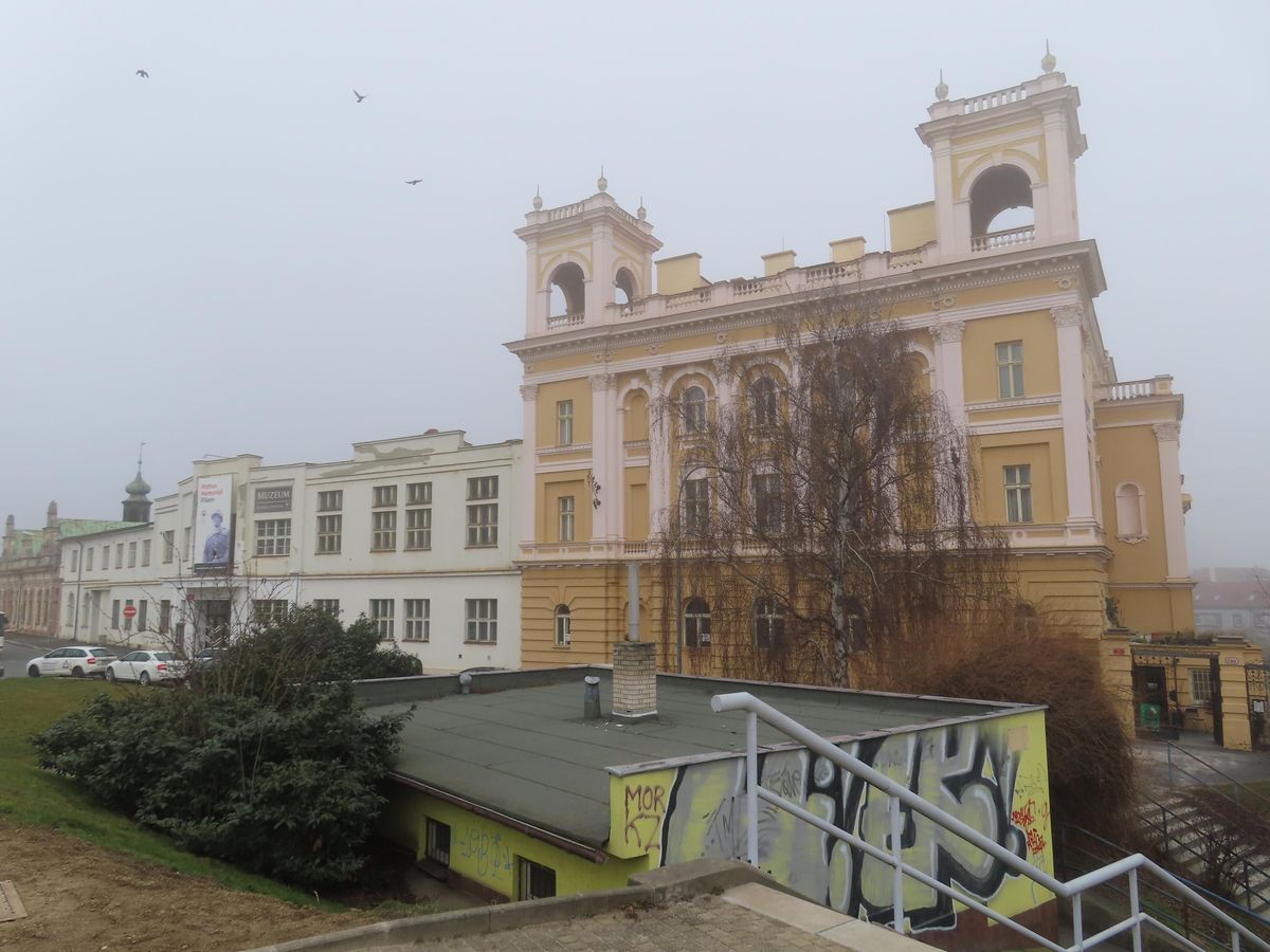 Lineárně umístěné objekty zleva: původní vila, pozdější muzeum a společenský sál s příslušenstvím