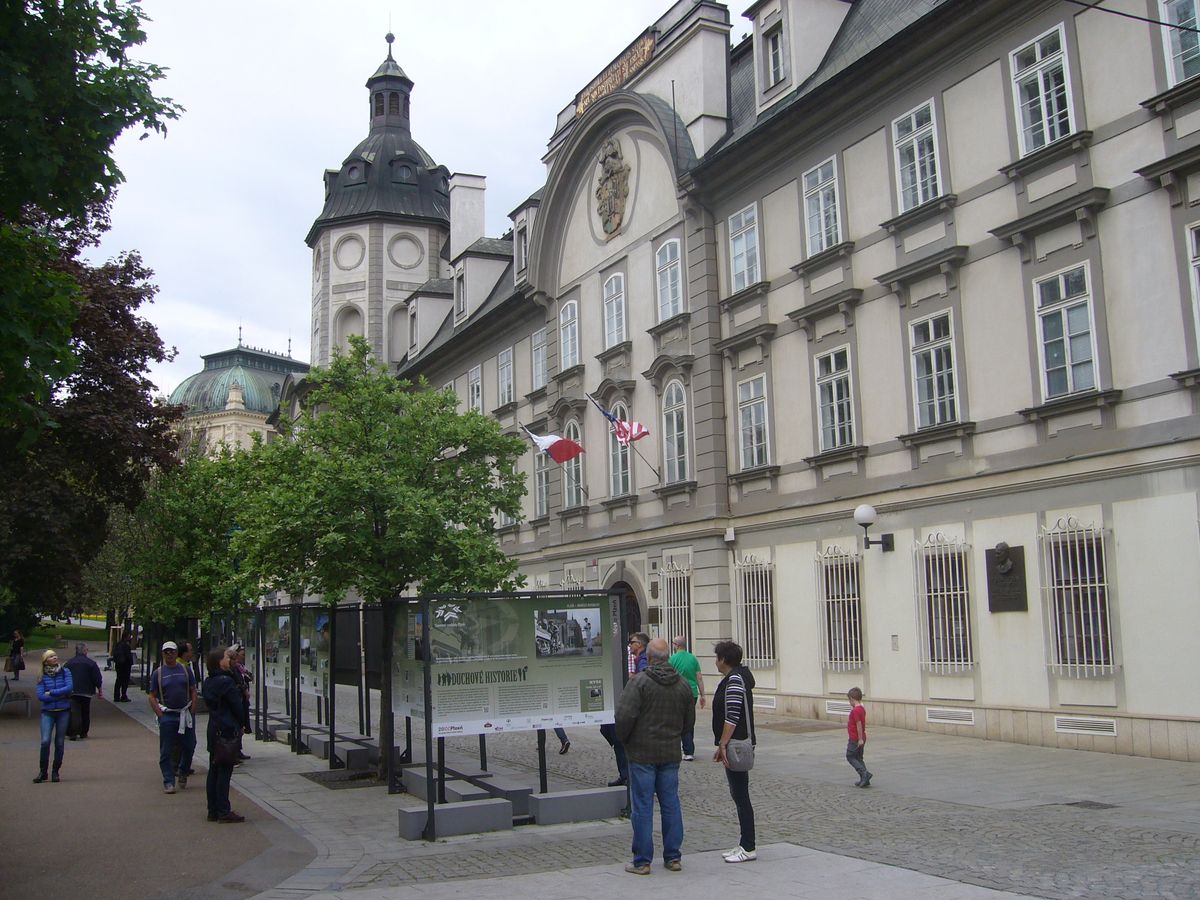Prostor před knihovnou ve Smetanových sadech je populární mimo jiné i aktuálními panelovými výstavami