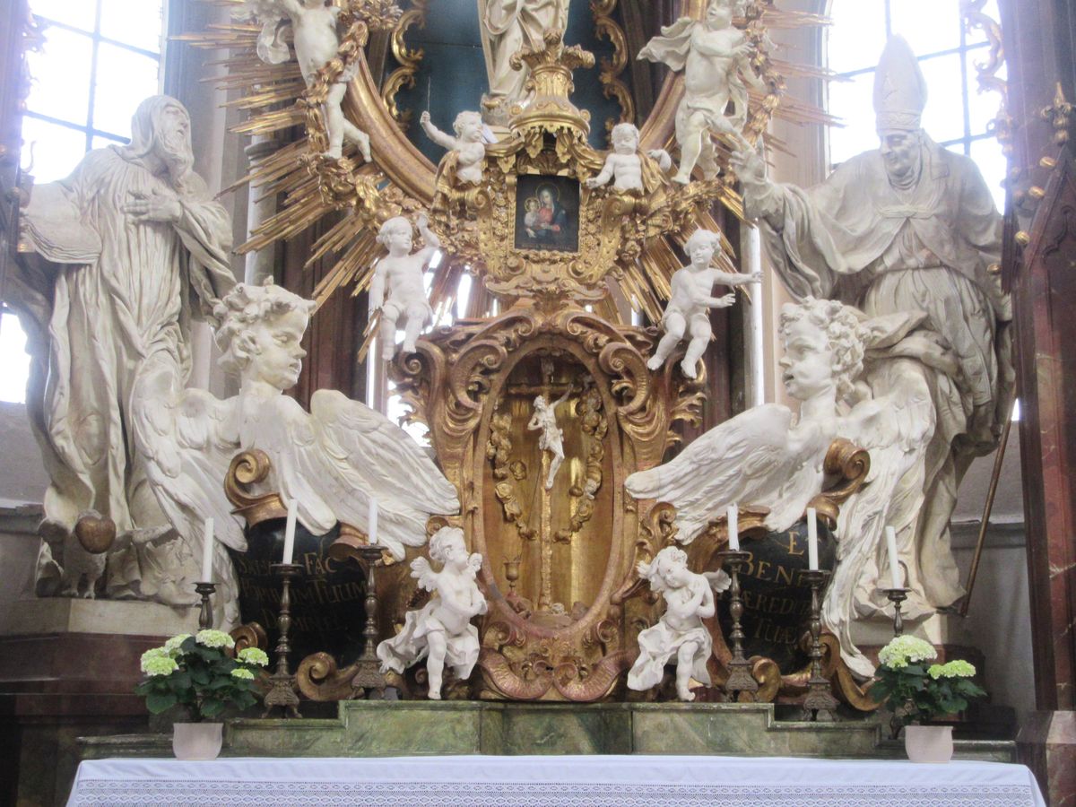 Interiér chrámu v areálu kláštera Kladruby západně od Plzně, kde rovněž tvořil Santini