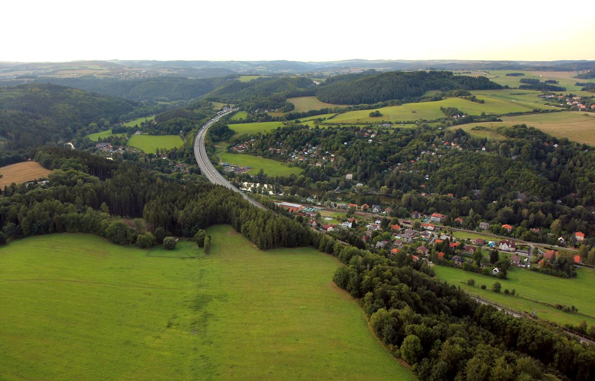 Hvězdonický most vytváří nad údolím Sázavy ladnou křivku ve směrovém oblouku