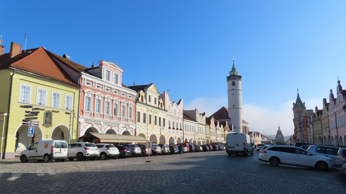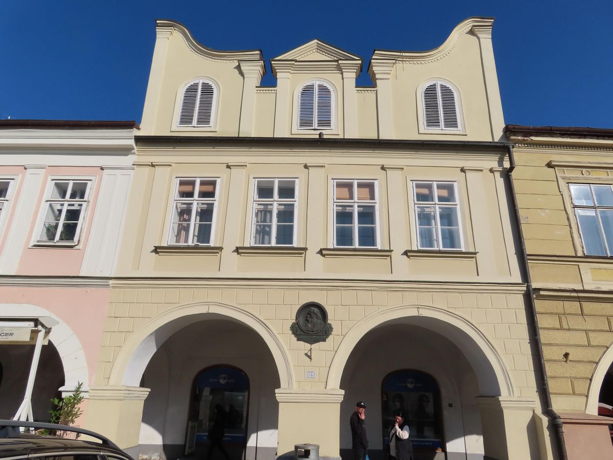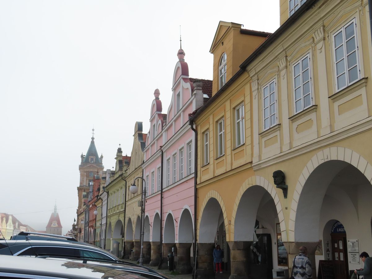 V řadové zástavbě domů, včetně toho s bustou slavného historika, vyniká malebnost domažlických podloubí