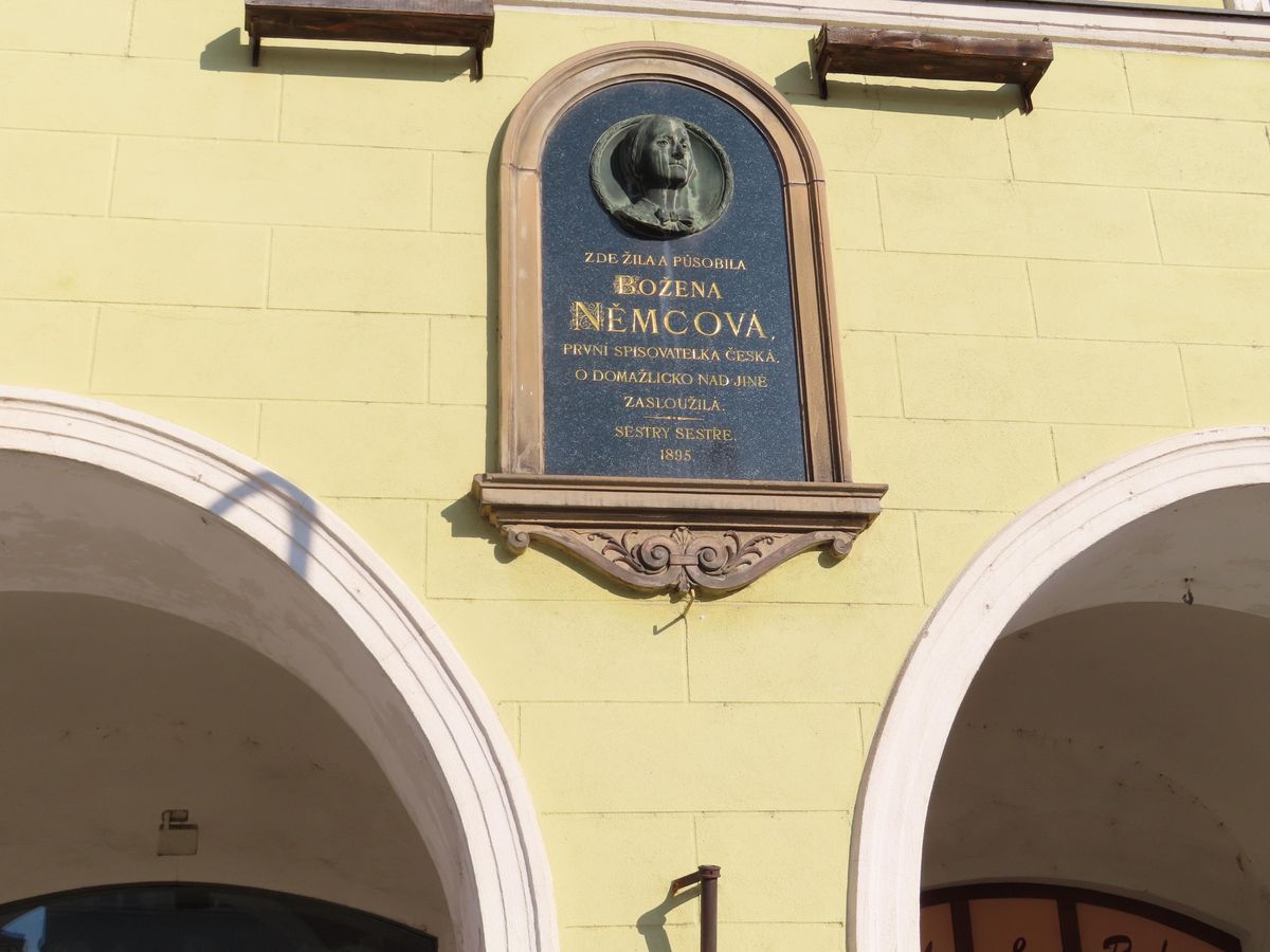 Pamětní deska Boženy Němcové, která s národopisnými náměty na Domažlicku začínala a později se nejvíce proslavila svojí knihou Babička