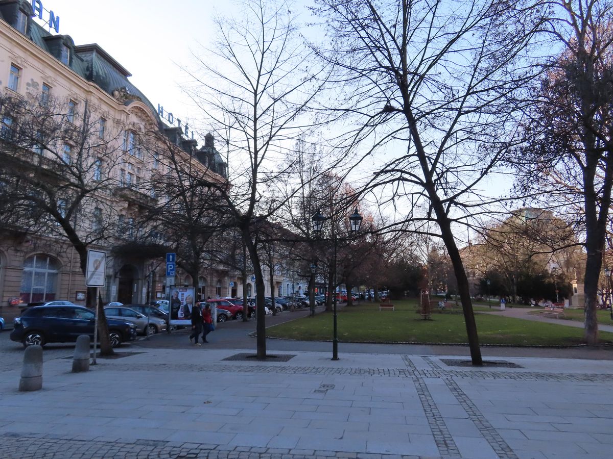 Smetanovy sady mezi hotelem a Velkým divadlem