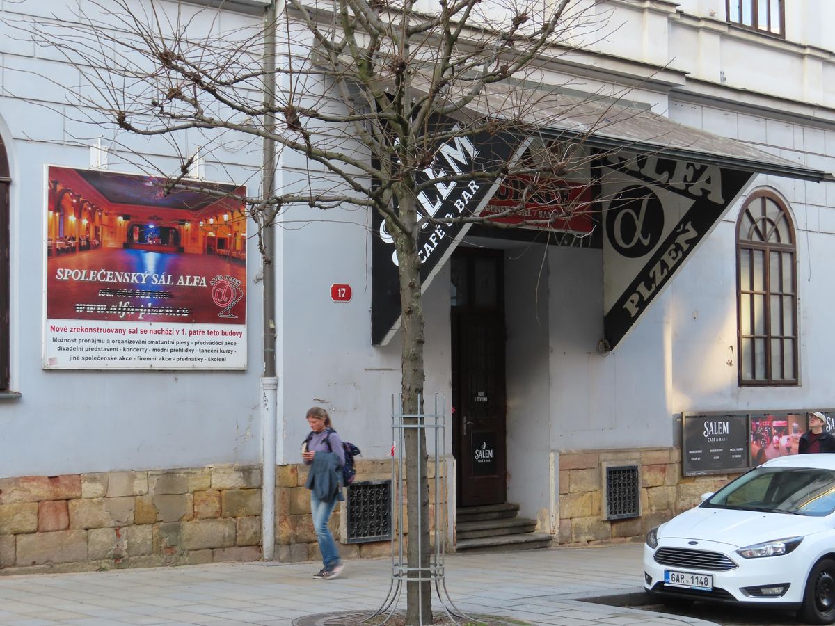 Vstup ke společenskému sálu Alfa, proslavenému dříve přítomností Antonína Dvořáka