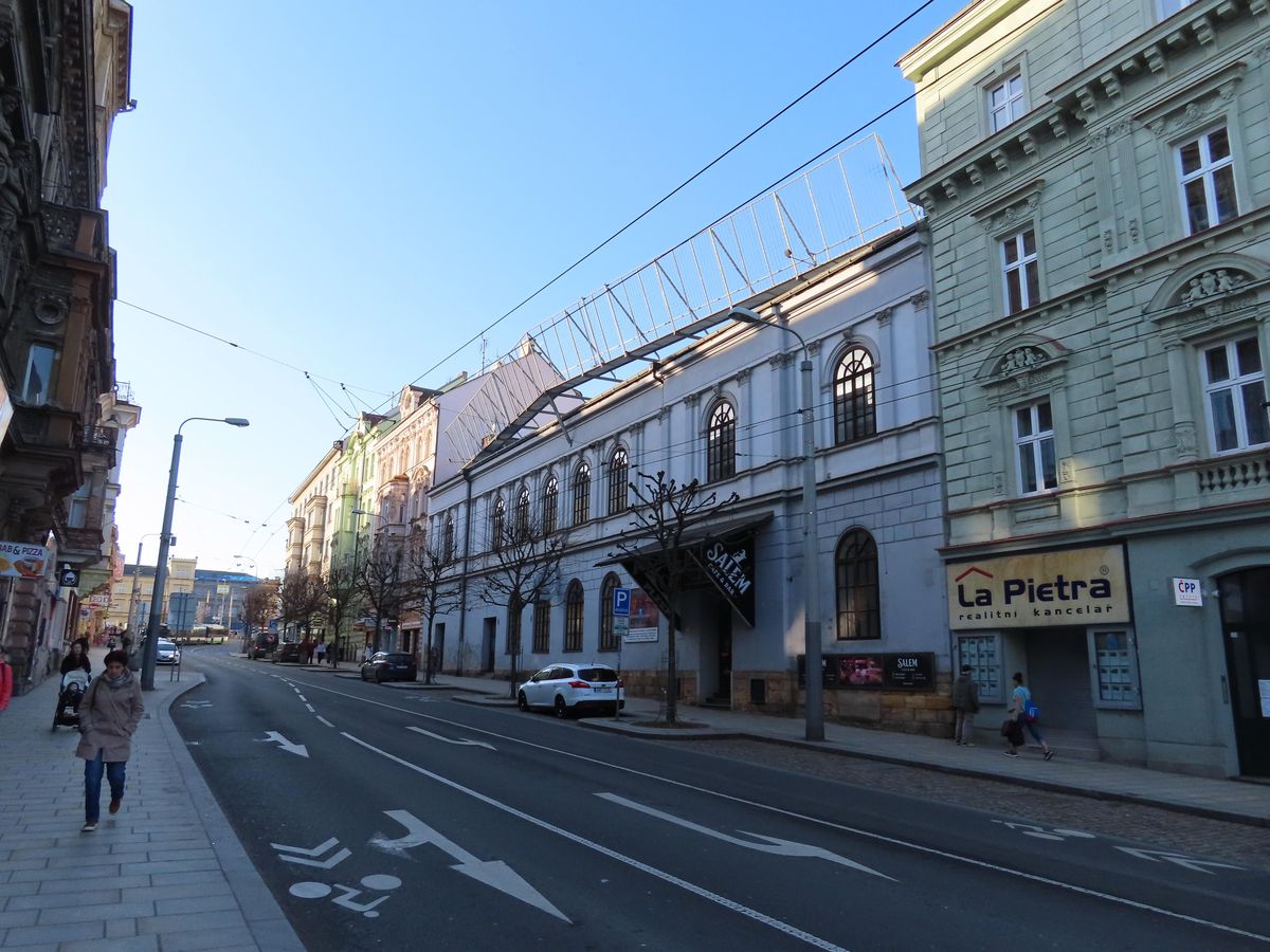 Waldekova dvorana, pozdější divadlo dětí Alfa, se ocitla na rušné Americké třídě a s hotelem ji spojuje jen vnitřní dvůr