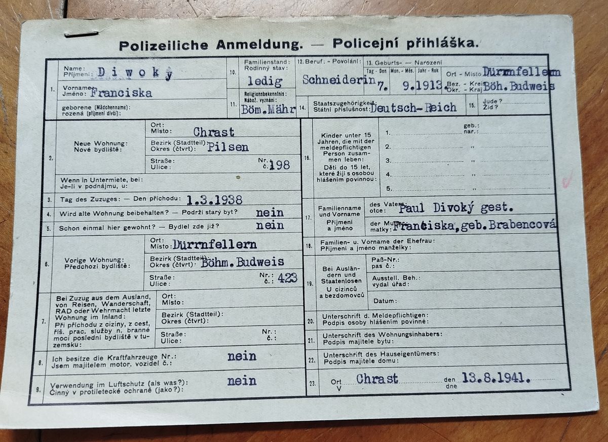 Při bádání po konfidentech spojených s Chrástem u Plzně jsem narazil na jméno Františky Divoké, někde také uváděné jako Františka divoká nebo Diwoka, která měla během války pobývat v Chrástu. V plzeňském archivu jsem našel její soudní spis a tady je její životní příběh:
