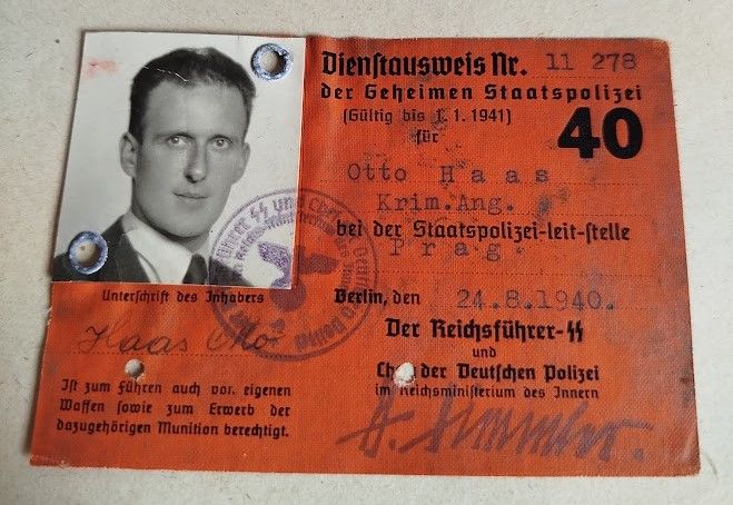 Protokol, sepsaný 7. června 1945 ve věznici Krajského soudu v Plzni s bývalým úředníkem německé tajné státní policie v Plzni Otto Haasem, narozeným 1905.