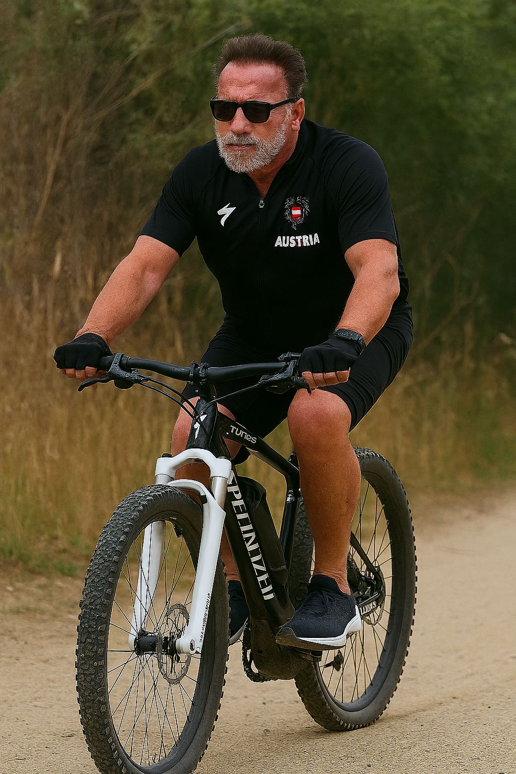 Arnold Schwarzenegger jedoucí na kole vytvořený v AI