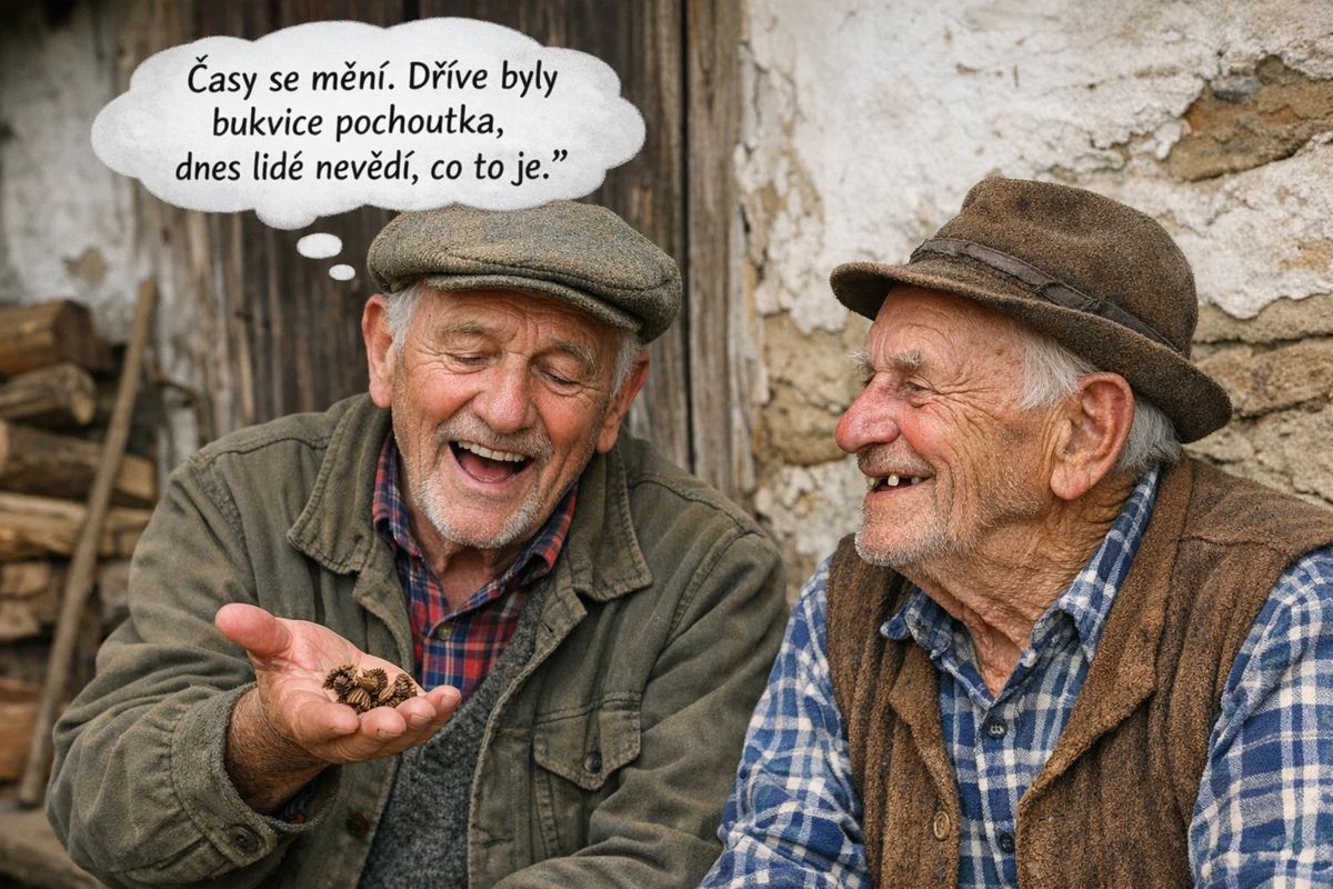 Staříček Janík Mrzký vypráví o starých časech, kdy vše bylo ještě v pořádku. Dnes si vzpomněl na bukvice. Nemůže si vážit doby, která o bukvicích nic neví, to je jasné. Ale když mu stařenka uvaří obvyklé „zemáky a zelé - živobytí celé“, je spokojen.