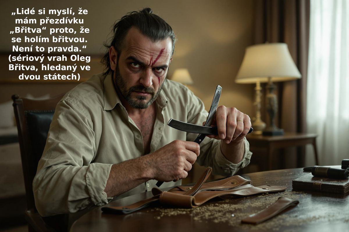 Oleg Břitva má zakázku a tak brousí. Je to zatvrzelý zločinec, vyznávající kontaktní ruční práci. Budete-li hodně zlobit, seznámíte se s ním také. (Humanizace společnosti postupuje, lidé jsou k sobě stále hodnější. Ale ne všichni.)