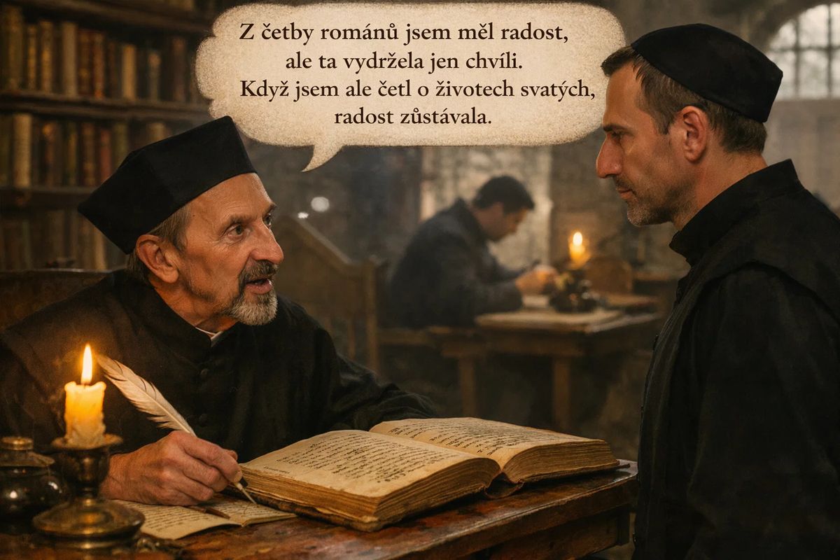 Ignác z Loyoly byl zkušený muž a hodně toho přečetl. A jeho závěr? Romány vám radost neudělají. A dnešní lidé s ním dojemně souzní, protože romány dnes už čte málo lidí, a mládež skoro žádná. Ejhle, porozumění napříč staletími!
