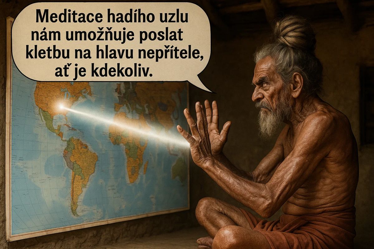 Zločinný jogín Višvamitra Pataňdžali vysílá kletbu na hlavu Američana Hieronyma Seebocka, který se pohrdavě vyjádřil o indickém kastovním systému. (Ale v nemocnici v Columbusu Hieronyma zachránili masáží srdce. Ovšem bylo to na knap.)
