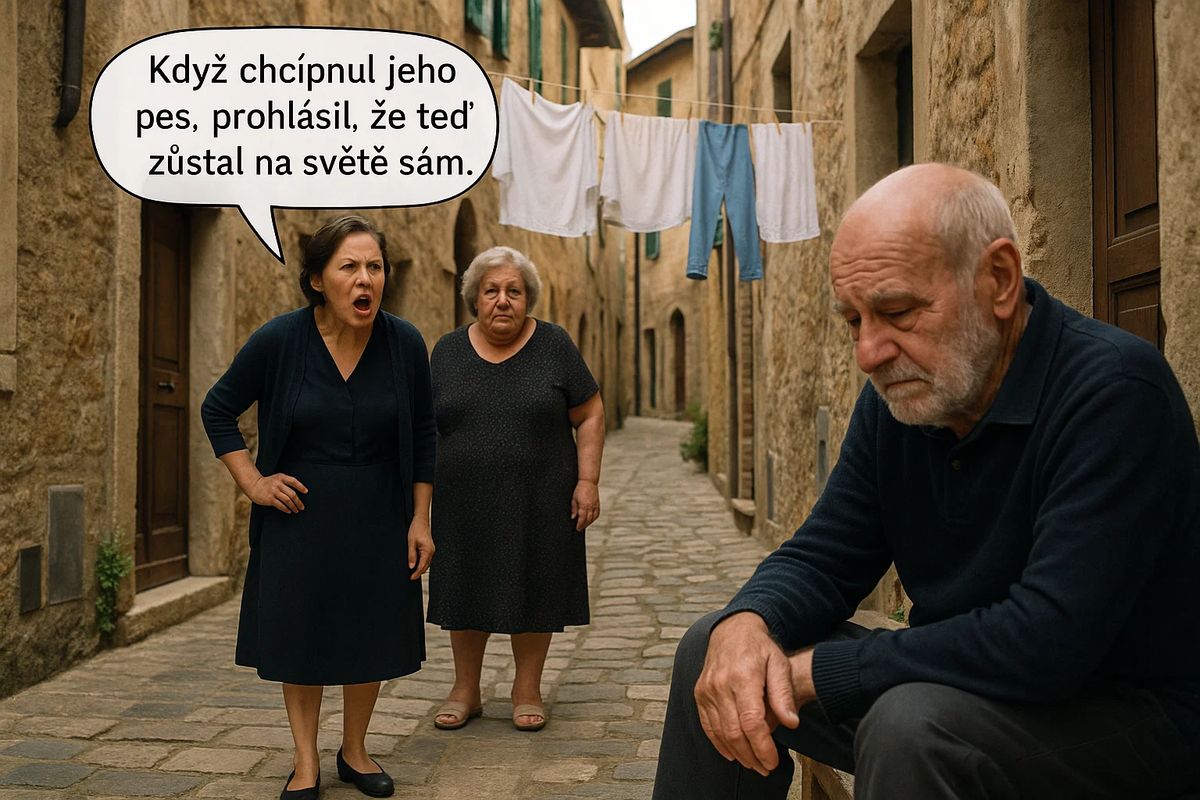 Pobouřená dona Giada Quattrocchiová se svým manželem nemluví od té doby, co zemřel jeho pes. Protože si myslela, že ona je pro něho důležitější. Nedoceňuje skutečnost, že teď u něho může zaujmout volné místo. (Pokud si manžel nepořídí nového psa.)
