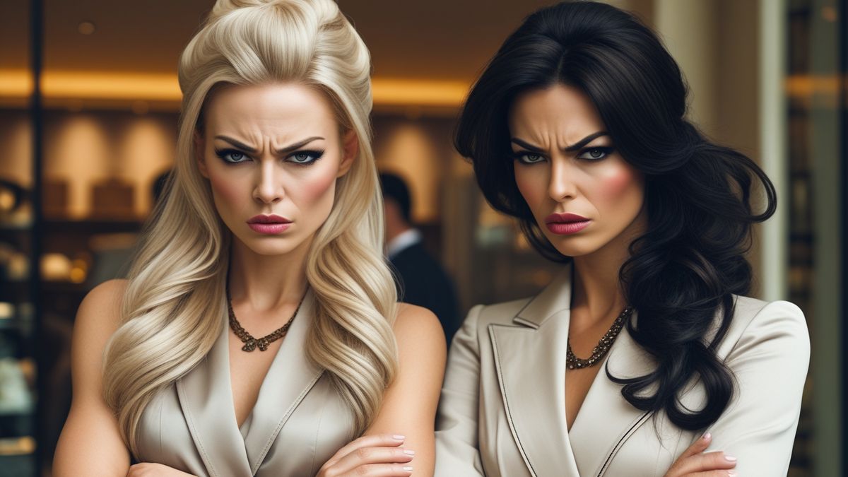 V malé prodejně zákusků stála prodavačka za skleněnou vitrínou se zbožím. Zrovna se tam zastavily dvě na první pohled velmi důležité ženy. Obě se nesly jako hollywoodské hvězdy. Jedna byla blond, druhá měla černé vlasy.