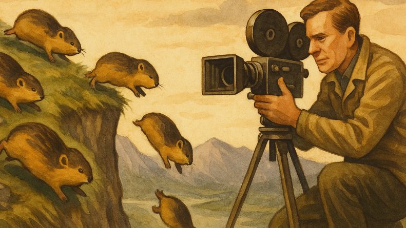 Záběry vznikly na jaře 1957 poblíž města Calgary. Kamera byla umístěna nízko, aby vytvořila iluzi rozlehlého arktického prostoru. Lumíci byli házeni z útesu mimo záběr, aby to působilo, že „dobrovolně“ skáčou do moře. Ve skutečnosti dopadali do vody, kde se většina utopila. V postprodukci byl přidán zvuk vln a komentář o „instinktivní migraci, která končí smrtí“. Film byl vydán v roce 1958 a okamžitě uspěl v amerických kinech i v mezinárodní distribuci.