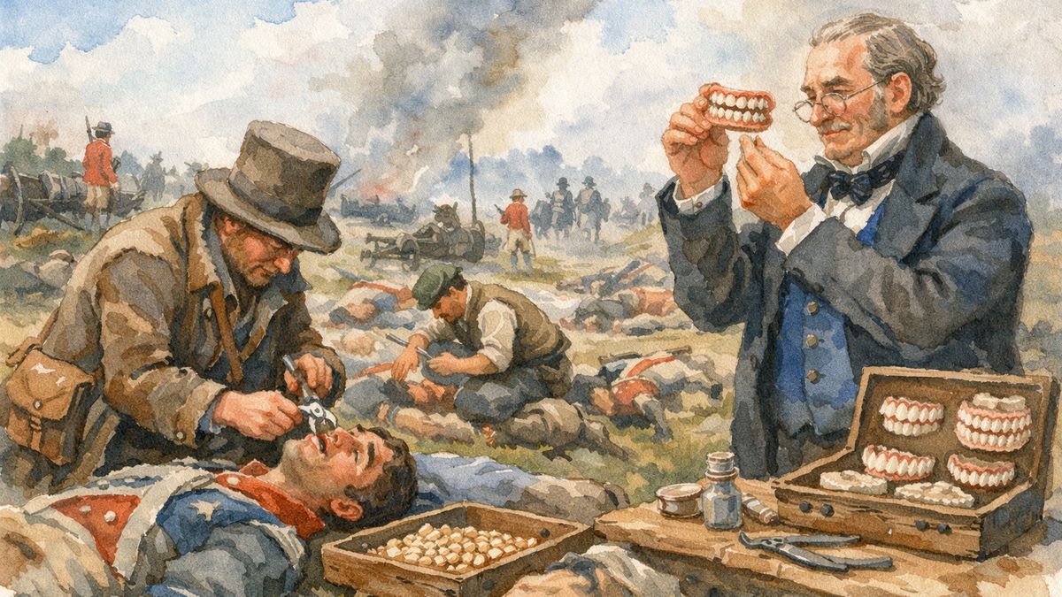 Masové války přelomu 18. a 19. století – zejména napoleonské války – vytvořily zcela nový a děsivě efektivní zdroj lidských zubů. Bojiště po velkých bitvách byla plná těl mladých mužů, kteří měli zpravidla zdravější chrup než městská populace. Zuby padlých vojáků se tak staly vyhledávanou komoditou.