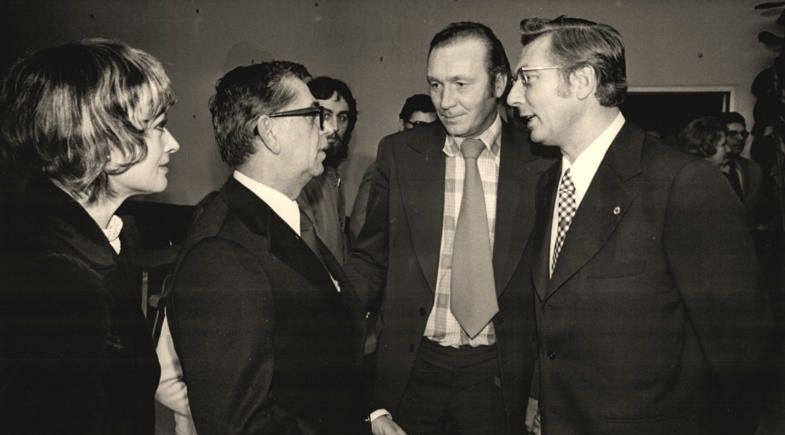 Brejchová s Vlastimilem Brodským na německé premiéře filmu „Jakub lhář“ v roce 1975. Uprostřed jeho režisér Frank Beyer