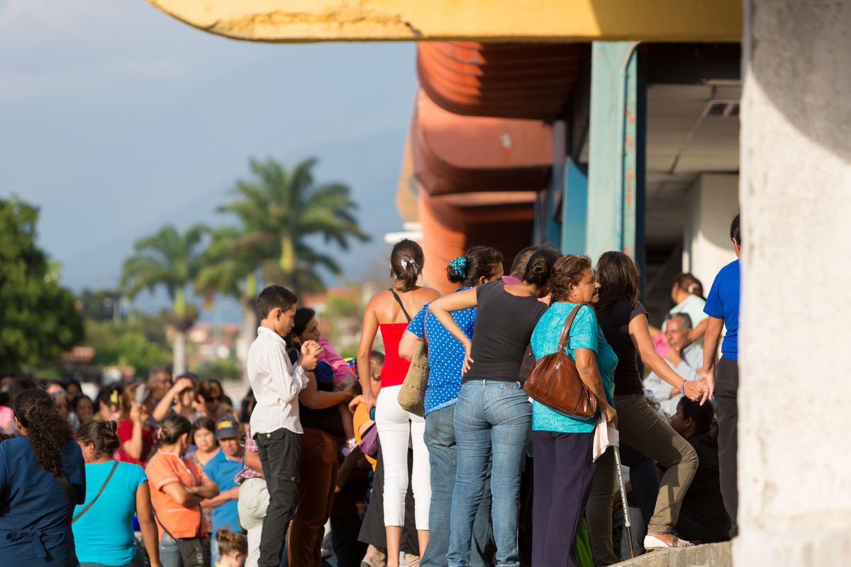Skupina Venezuelanů čekajících ve frontě u supermarketu v Meridě v roce 2015