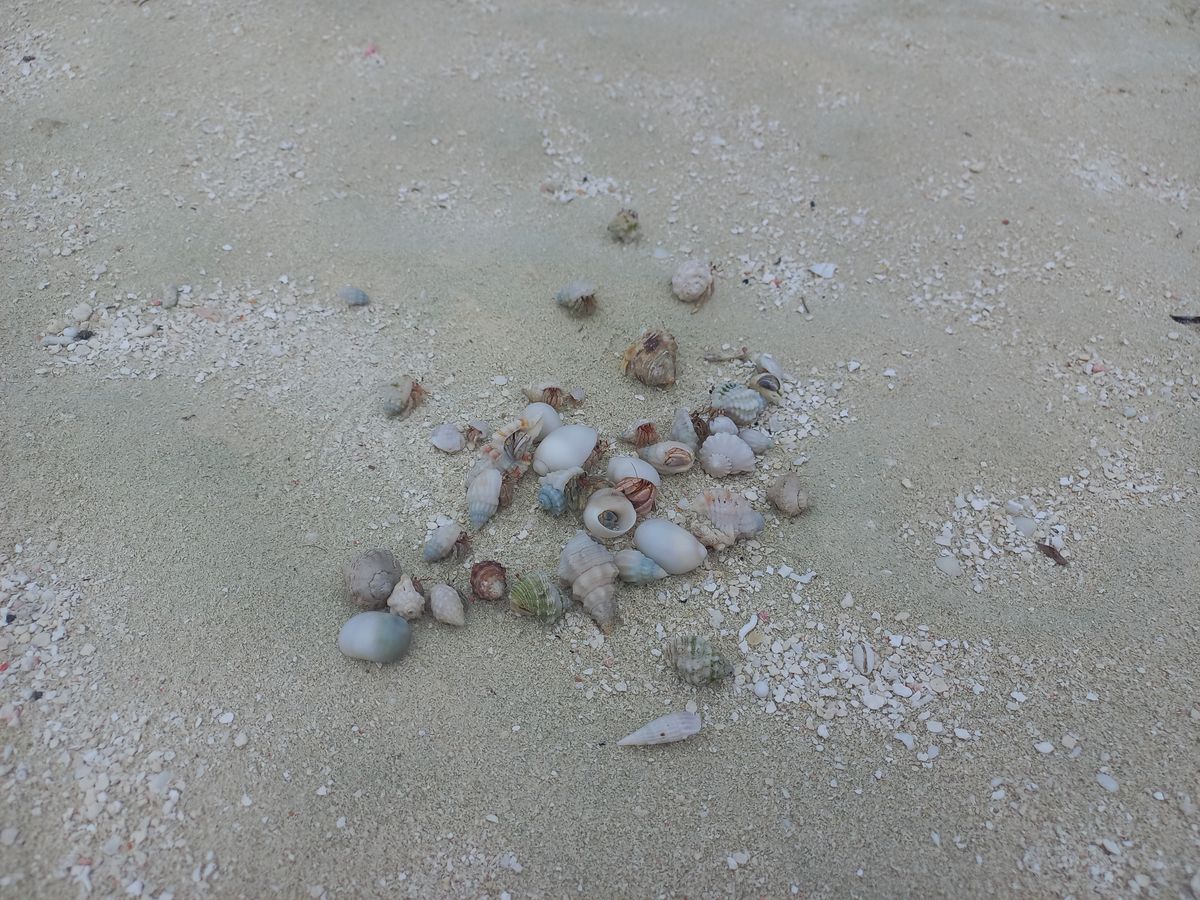Zdejší mušle obývané kraby poustevníčky jsou velmi čilé a pořád schůzují nebo někam metelí
