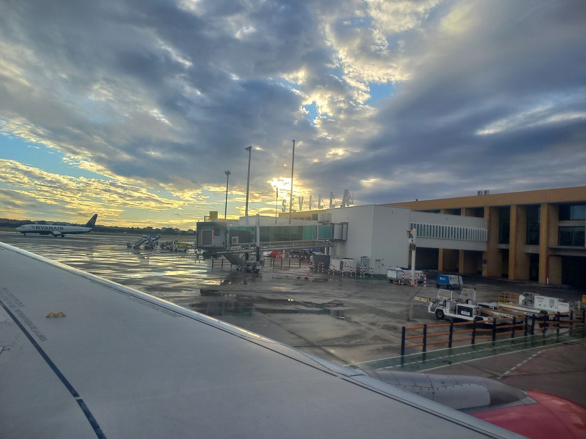 Až nastal ten den, kdy jsem si tuhle situaci mohla zažít na vlastní kůži. Toho rána nás čekal nenáročný let s přestupem Sevilla – Madrid – Praha. Nic komplikovaného. Zpočátku se zdálo, že vše půjde hladce. Jediná malá nepříjemnost byla, že nás letecká společnost e-mailem vyzvala k odbavení kabinových zavazadel, s čímž jsme nepočítali. Ale aspoň se s nimi nebudeme muset vláčet po letišti v Madridu, takže cajk. Ráno nás na hotelu vyzvedl řidič taxíku, s úsměvem naložil kufry a frčeli jsme na letiště. Žádný provoz, letiště poloprázdné, vše šlo až podezřele hladce. Začalo poprchávat a předpověď nebyla úplně příznivá. Tak jsme byli rádi, že tomu psímu počasí v Seville uletíme.