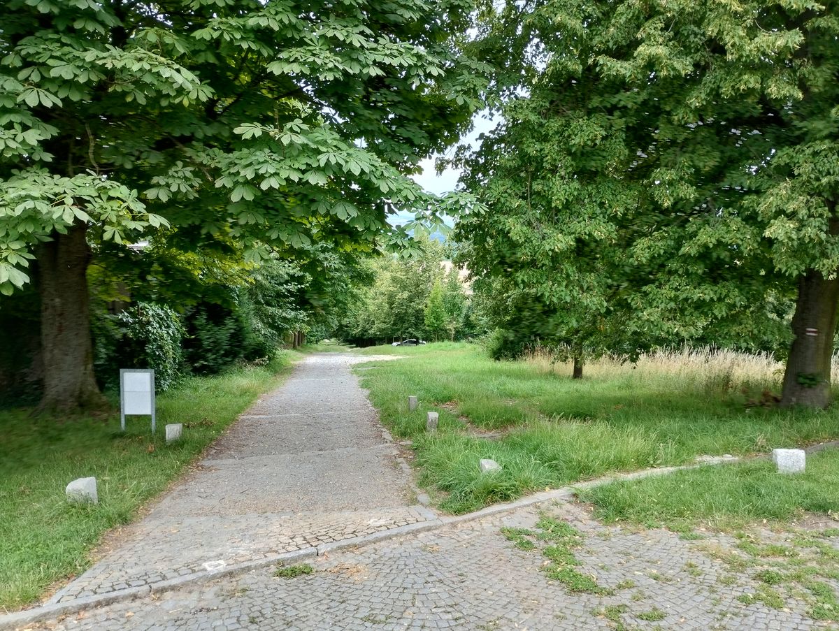 Záhy jsme zjistili, že terén v aleji není úplně ideální pro kočárky. Nakonec musel vzít manžel golfku na záda a já jsem nesla mimčo v náručí. Kdybychom to bývali věděli, určitě bychom vzali s sebou šátek nebo manduku. Možná, že některé sportovnější kočárky by trasu zvládly bez hrozby upadnutí kol, ale náš by cestu nahoru nedal. Dolů ale jel celkem dobře.