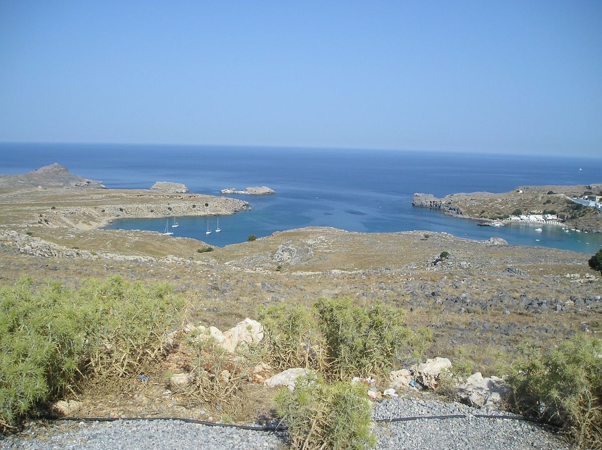 A pak tu byl Lindos. Jely jsme do něj autobusem a pohled na město z horní silnice byl skutečně mimořádný. Paprsky se do bílých zdí domků vpíjely jak o závod a všude kolem nás se rozprostírala jakási mlha z toho, jak se horko odráželo od asfaltu, písku, kamenů, keřů, hladiny…