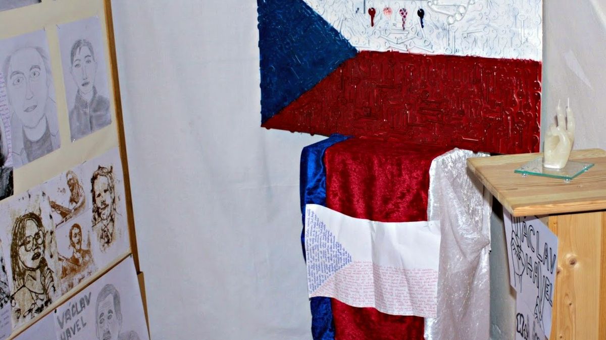 Použité fotografie jsou z výstavy Sametové vzpomínání z listopadu 2019 z mělnického muzea děl, která zpracovali žáci z deseti škol Mělnicka a svůj pohled na události 17. listopadu vyjádřili obrazem i textem pomocí vzpomínek svých rodičů či prarodičů. Expozice nabízela vzpomínání na listopadové události, na Václava Havla nejen prostřednictvím portrétů, ale nechyběly i netradiční umělecké artefakty jako plastický objekt kalhot Václava Havla, koláže z klíčů či plastiky véček.