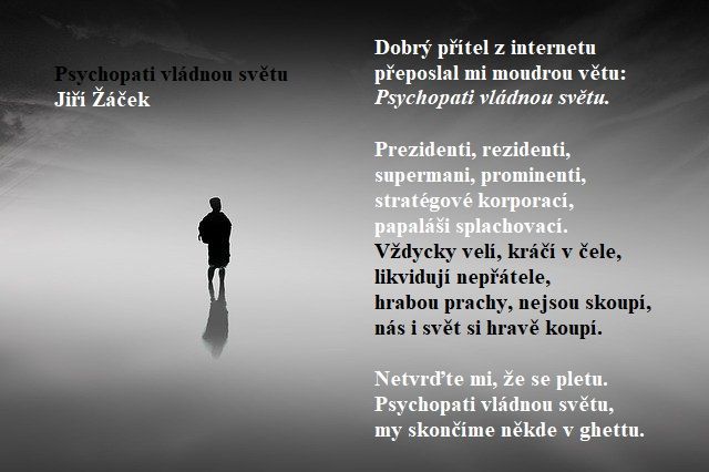 Nakonec se s vámi rozloučím básní Jiřího Žáčka, která se k aktuální situaci hodí. A bohužel nejen k naší.