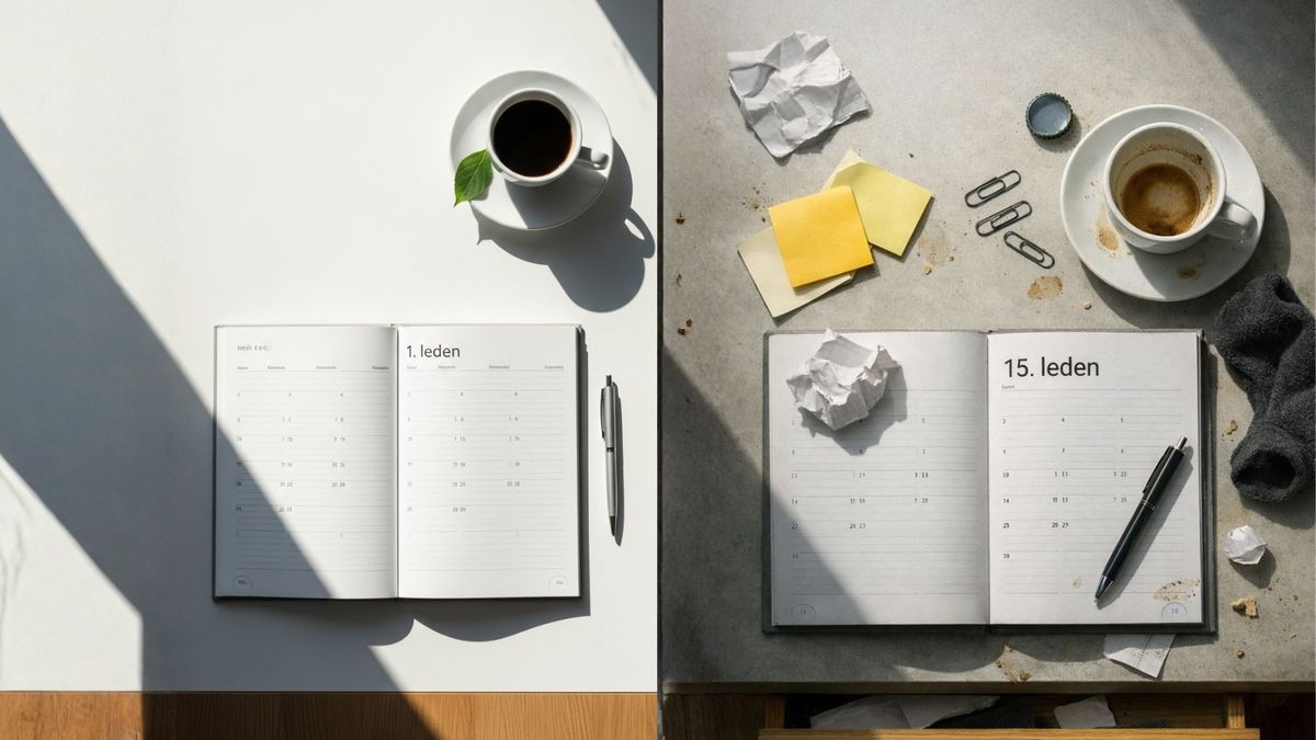 Proto v lednu zažíváme klasiku: první dny dobrý, pak přijde stres, únava, starosti, návštěvy… a mozek řekne: „Zpátky do starého režimu. Ten znám. Tam jemi dobře.“
