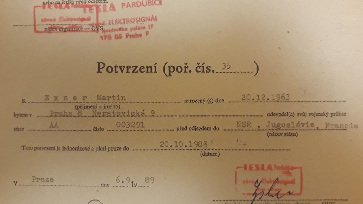 Pas jste dostali bez potíží, ale bylo nutné požádat ještě o výjezdní doložku. To bylo takové povolení opustit komunistický ráj. Tam jste vyplnili svoje členství a funkce v politických a společenských organizacích, kde pracujete, totéž o manželce nebo manželovi, i když s vámi třeba nejeli, proč a za kým do ciziny jedete, kdo vás pozval, zda máte nějaké příbuzné v cizině, zda legálně či emigranty, zda máte nějaké příbuzné u ozbrojených složek a museli jste získat souhlas ředitele organizace, kde jste pracovali, nebo školy, kde jste studovali, souhlas vojenské správy a potvrzení, že jste odevzdali vojenskou knížku. Celý proces trval několik měsíců a podání žádosti o pas nebo o výjezdní doložku znamenalo několikahodinovou frontu na pasovém oddělení a jejich vyzvednutí po pár týdnech rovněž.