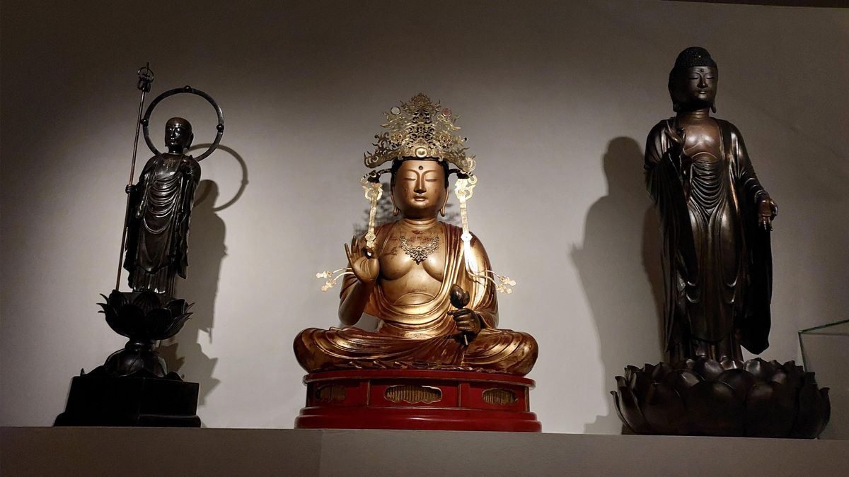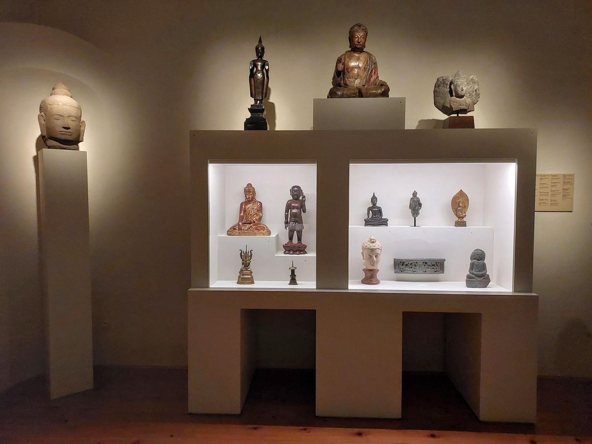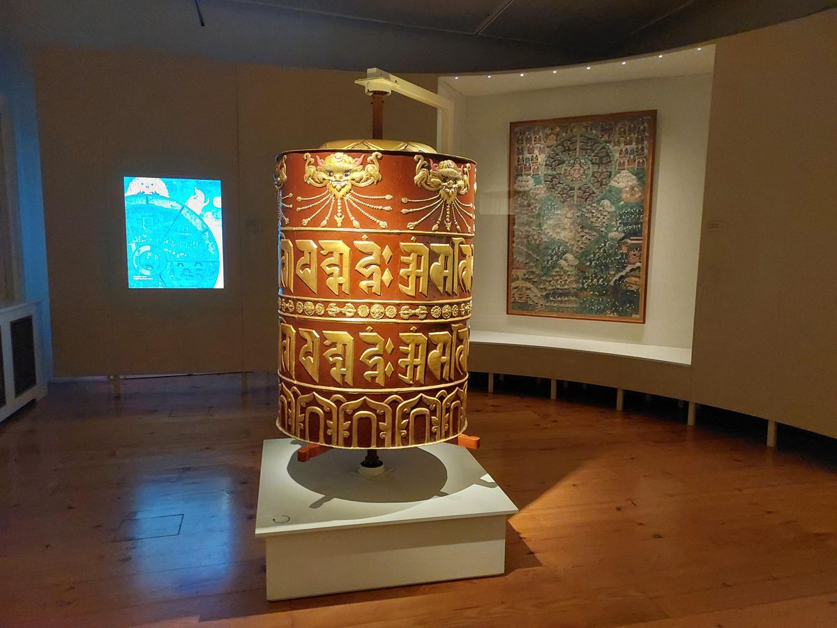 První místnost ve druhém patře je věnována jediné otázce: kdo to byl Buddha? Následuje krásný soubor soch z různorodých oblastí, kam se buddhismus šířil. Hned vedle je pozornost návštěvníka zaměřena přímo na Tibet. V celé expozici se nachází několik příležitostí nejen pro děti otevřít připravený box a beze strachu zapojit také svoje ruce. Zde to byl rozměrný modlitební mlýnek, který můžete jednoduše rozpohybovat. Nauka buddhismu se tu neprezentuje jen za pomoci soch a dalších artefaktů, používají se také různé audiovizuální pomůcky. Doporučuji si udělat čas a chvíli postát u video rozboru jednoho z textilních obrazů. Najednou před vámi doslova ožije základní nauka tohoto světového náboženství.
