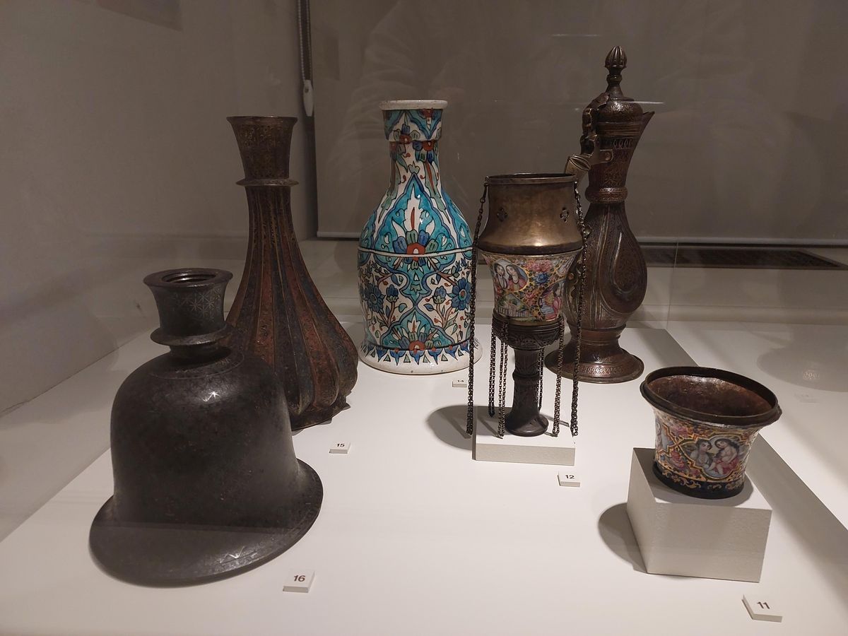 Příležitostí pro poznání je v dalších místnostech daleko více. Pokud se zajímáte o umělecky ztvárněné písmo (kaligrafii), dekorativní práce z kovu nebo porcelánu, to všechno na vás čeká. Na jeden detail bych málem zapomněl a tím je hudební složka. Nemyslím tím alarm, který se mi podařilo nechtěně spustit na několika místech. Nejen v závěrečné části expozice zní dobře vybraná hudba, která dokresluje zážitek z vystavených předmětů. V popiscích si můžete přečíst informace o tom, co to právě okolo vás hraje.