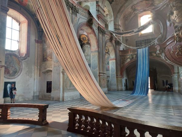 Hlavní modlitební hala je vyfocená z galerie pro ženy.