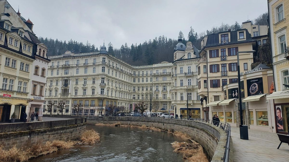 Počasí bylo docela proměnlivé, proto jsme si museli pečlivě plánovat naše aktivity. Rozdělili jsme si je podle intenzity deště na pobyt venku a uvnitř. V prvním případě jsme opět využili karlovarskou městskou hromadnou dopravu a z Tržnice vystoupali autobusem na zastávku Národní. To sloveso přesně vystihuje reliéf obklopující údolí s kolonádami a hotely.
