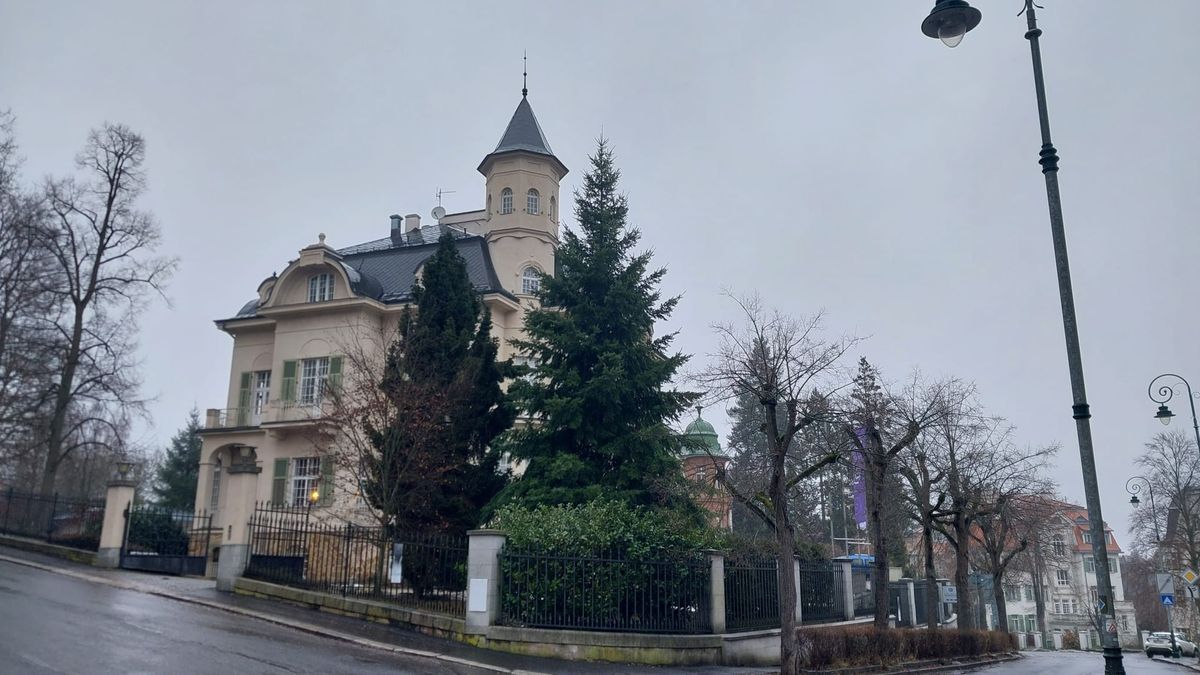 Poslední den se počasí pokazilo, ale vyřešil to deštník a trocha trpělivosti. Proto jsme si vybrali prohlídku Becherovy vily na ulici Krále Jiřího. Pravidelně jsme chodili okolo na obědy dolů pod kopec, takže jsme o její lokalitě moc dobře věděli. Její návštěvu mohu doporučit zájemcům o nevšední secesní architekturu počátku 20. století. Seznámíte se s pohnutou historií stavby a jistě vás zaujmou rekonstruované detaily. Měli jsme štěstí na výbornou paní průvodkyni, která nás uvedla do souvislostí života v Karlových Varech.