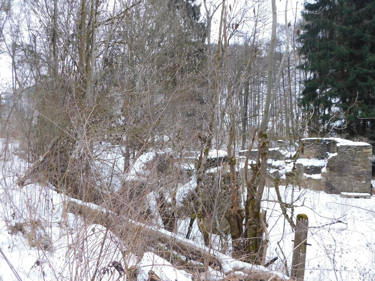 Od odpočívadla jsem odbočil na červenou a kolem Svaté studánky jsem zamířil k Dudákovskému mlýnu. Dudákovský mlýn si ještě pamatuje slávu hradu Gutštejn, protože první zmínka o něm pochází z roku 1569. Na přelomu 19. a 20. století patřil k největším mlýnům v okolí a kromě mletí zde fungovala pila, výroba šindelů a lisovna řepkového oleje. Od 50. let minulého století sloužil k soukromým účelům a v roce 1994 vyhořel.