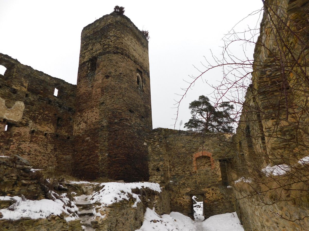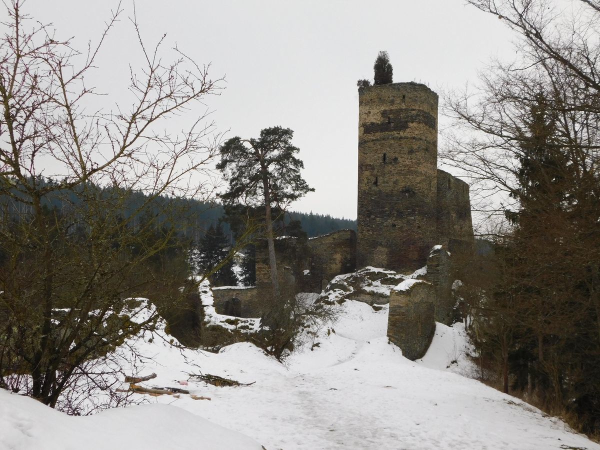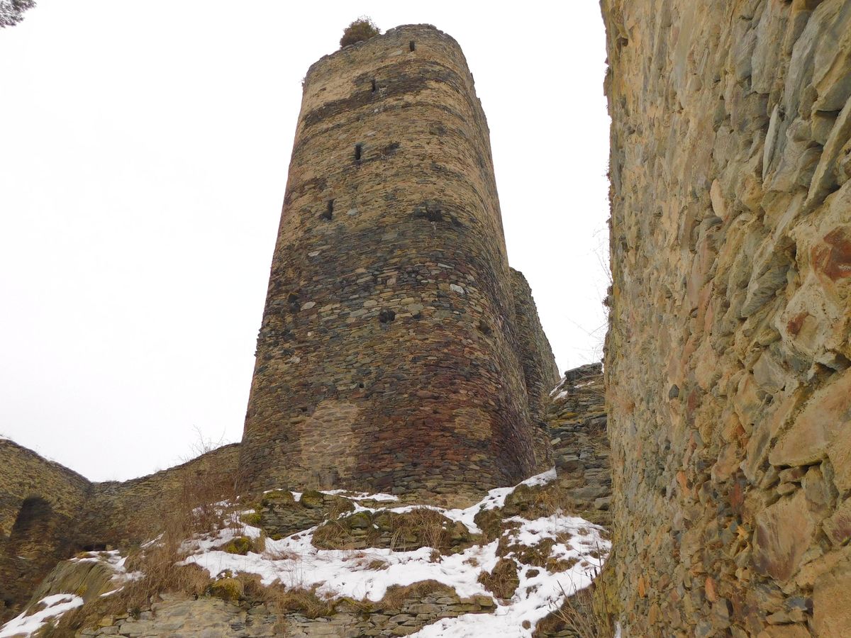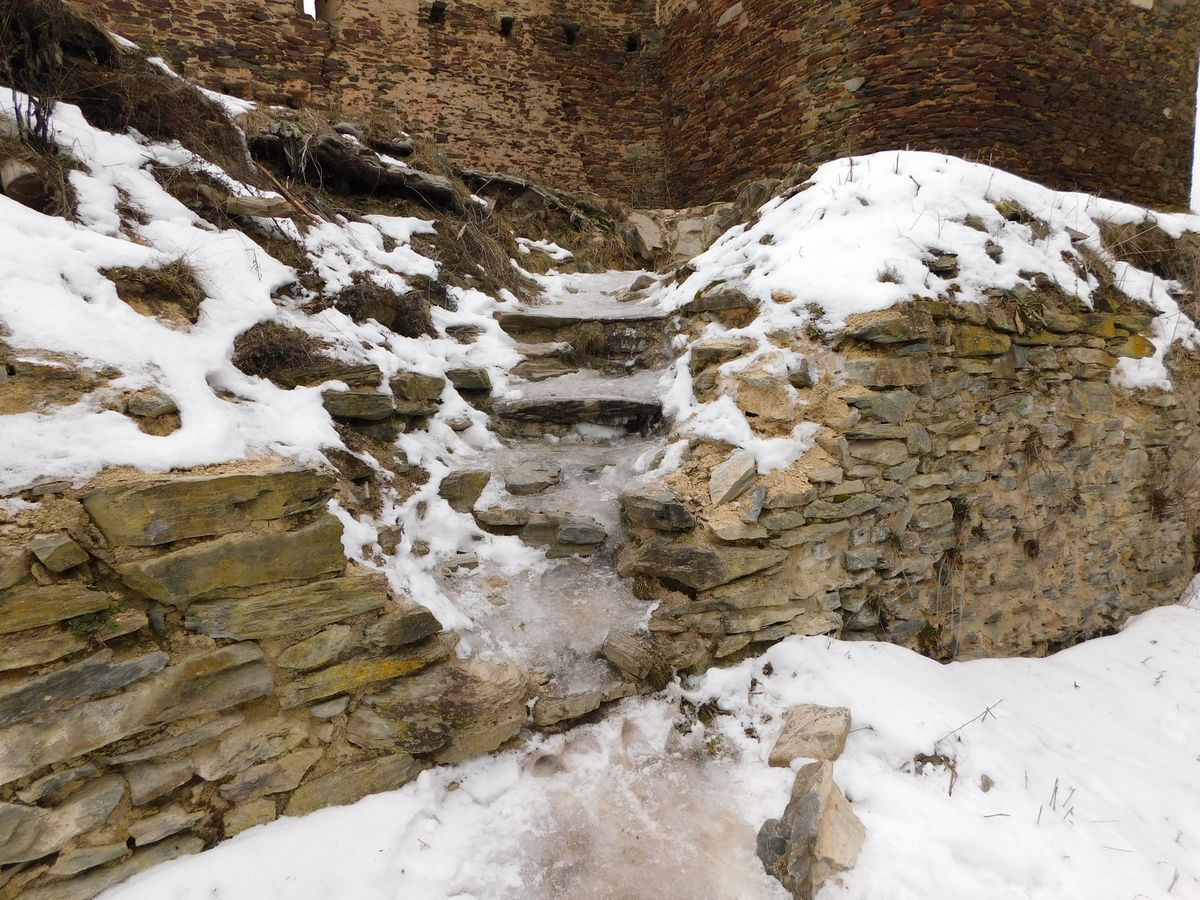 Cesta k hradu by byla určitě příjemná, kdybych tam přijel třeba na jaře, ale vzhledem k tomu, že bylo -10 stupňů, byla to jedna velká klouzačka. Hrad je nepřehlédnutelný a zasazený jako by v údolí na jakémsi skalním ostrohu. V době mé návštěvy vypadal jako ledové království, všude plno sněhu a pod ním led. Co mě zaujalo, byla dominantní věž hradu – ta totiž nebyla kulatá, jak bývá obvyklé, ale měla tvar kulatého čtverce.