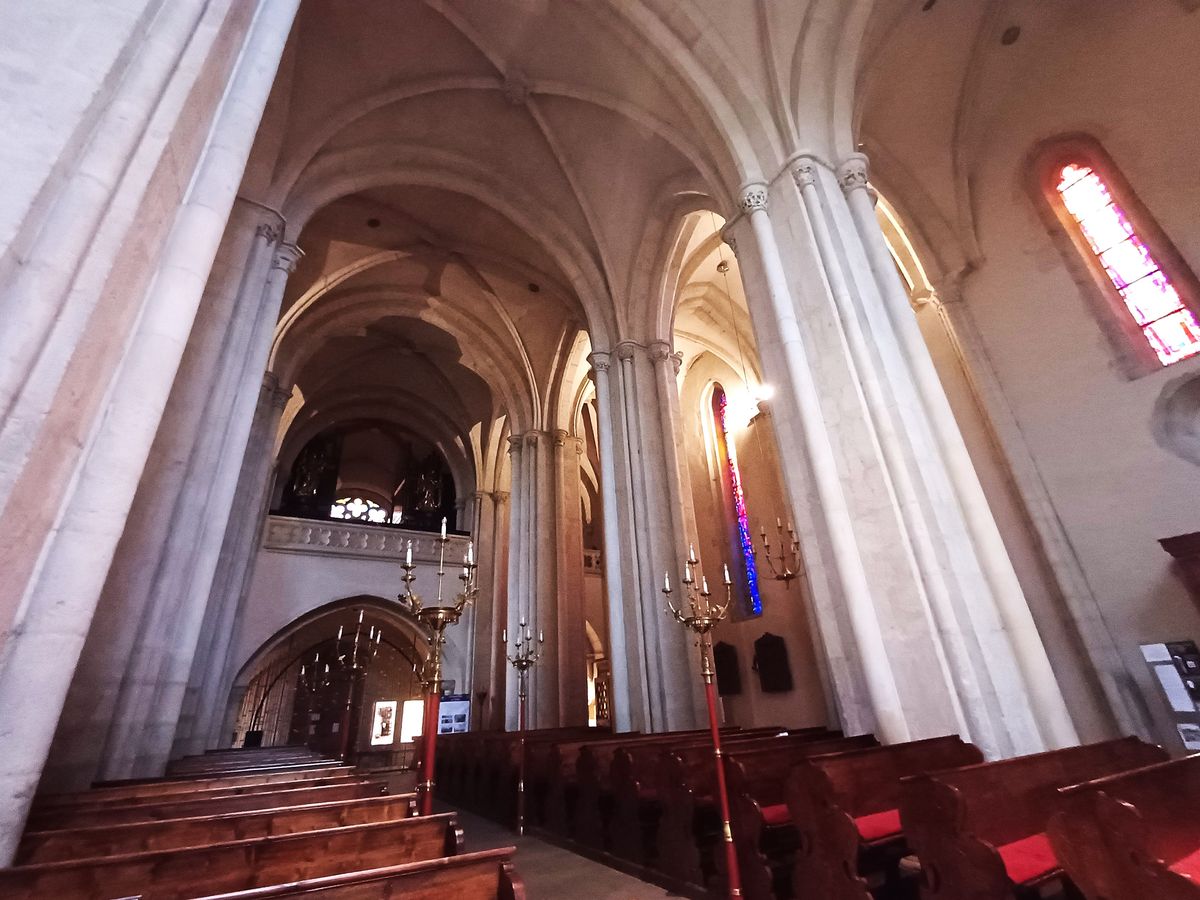 Lodě mají pět klenebních polí, z nichž nejvýchodnější je dvojnásobně dlouhé. Z vnější strany jsou podél stěn hranolové opěrné pilíře, mezi nimiž vedou oblouky tak, že pod nimi vzniká volný průchod podél zdi.
