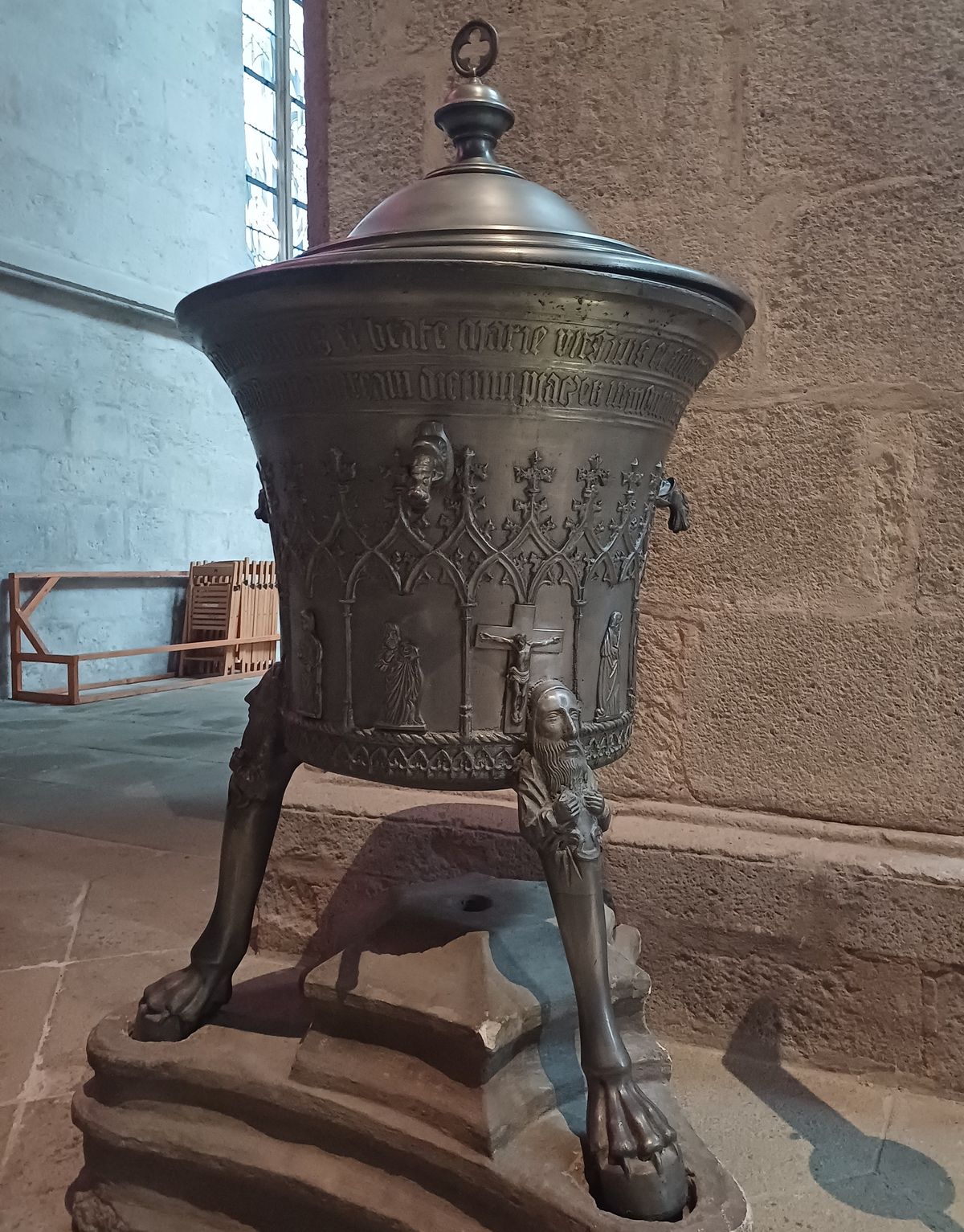 cínová křtitelnice z roku 1485, kterou odlil mistr Ondřej Ptáček z Kutné Hory