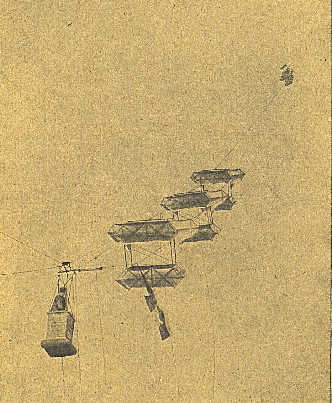 Ve Francii tyto pokusy započaly již v roce 1886 p. Maillotem, v roce 1894 Angličan Baden Powel začal využívat komorového draka a spojil několik draků k sobě do drakového vlaku a dosáhl s ním výšky 600 metrů. Brook Shmith pak dosáhl výšky 1 000 metrů. Pokusy a vývoj pokračovaly ve Francii, kde kapitán Saconney technologii rozpracovává, obohacuje o fotografický přístroj a vycvičí malou vojenskou jednotku. Čtyři muži dokáží za šest minut připravit drakový vlak k vypuštění, který při rychlosti větru šestnácti metrů za sekundu unese 120 kg – tedy muže v pozorovacím koši. Z důvodu stability a bezpečnosti se používala dvojice těchto drakových vlaků.