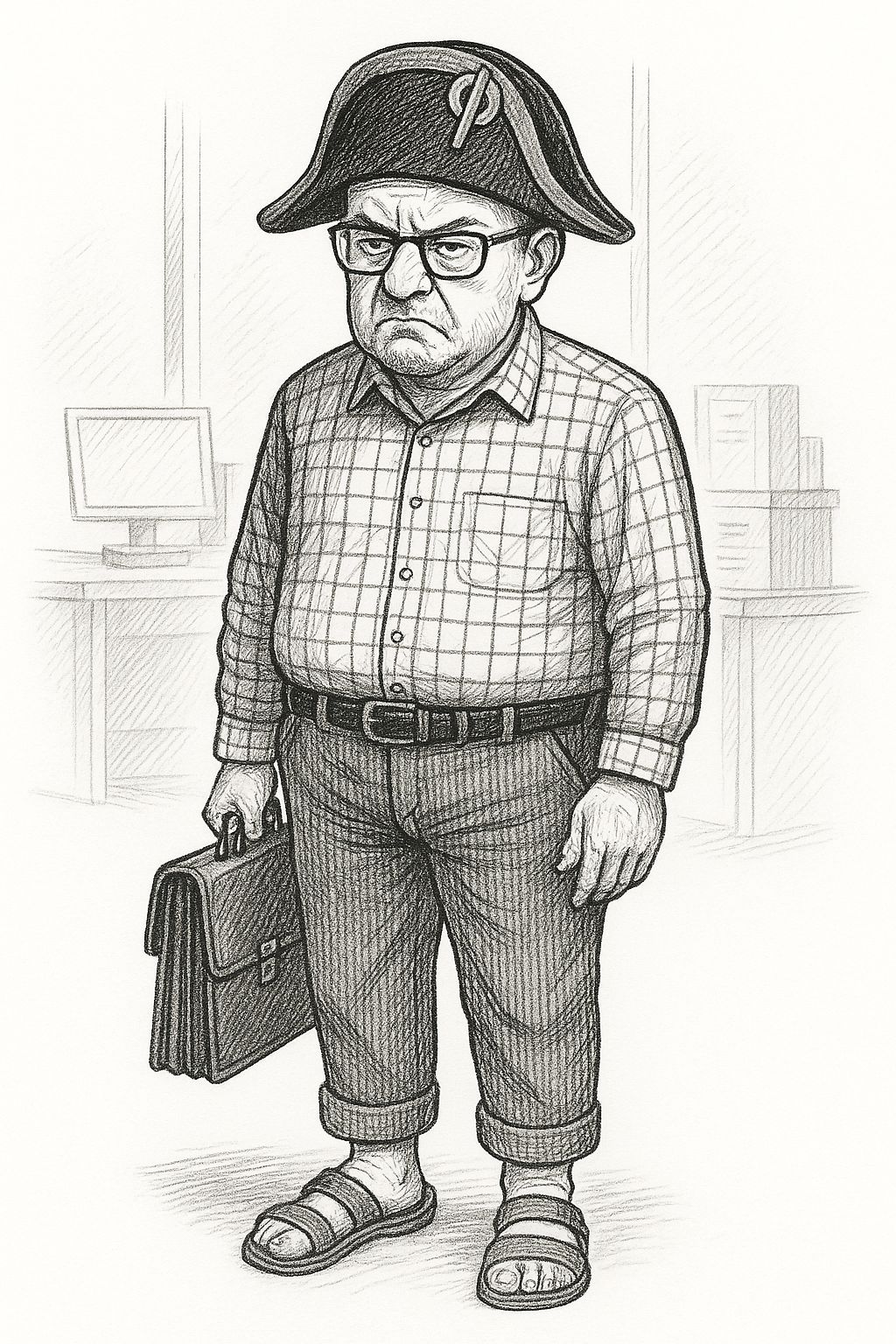 Tento typ člověka, zoufale potřebuje moc. Ne proto, aby vedl kolektiv, nebo úřad, ale aby si léčil vlastní komplex. Takový šéf bývá směsí zhrzeného milence a malého diktátora – touží po obdivu, ale neunesl by zrcadlo. Každá odlišnost, nesouhlas nebo morální pevnost druhých mu připomíná jeho vlastní slabost. Proto reaguje útokem, ponižováním ostatních, pokaždé když vidí slabost. Moc se v takových rukách, stává psychologickým ventilem, nástrojem sebezáchrany. Zejména vůči ženám nebo slabším kolegům, kde může konečně uplatnit moc, která mu jinde chybí. V prostředí úřadu se tak rodí typ „malého boha“ – muž, který má razítko, podpis a pocit nadřazenosti, ale vnitřně je naprosto prázdný, jen zaslepený svojí neomylností a nepostradatelností. Z jeho příkazů není cítit autorita, ale úzkost maskovaná agresí. Každý, kdo projeví integritu, je v jeho očích hrozbou, kterou je nutno pokořit, zlomit nebo veřejně zneuctít.