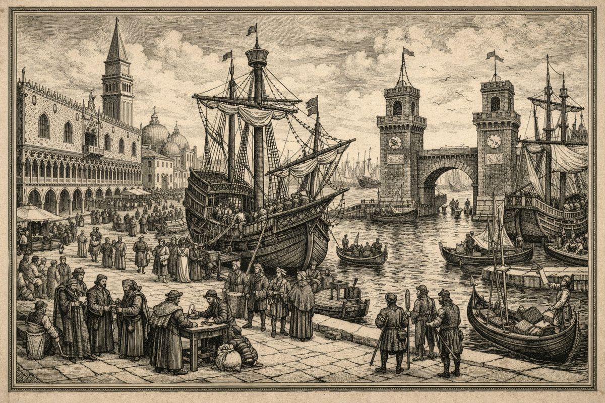 Dne 1. června 1493 se poutníci nalodili na několik lodí. Každý z účastníků zaplatil za plavbu do Svaté země a zpět 50 dukátů, což představovalo značnou finanční částku dostupnou jen majetnějším vrstvám. Lodní trasa vedla po osvědčených obchodních a poutních cestách Benátské republiky: přes Zadar, ostrov Hvar(Lesina), Dubrovník, Korfu, přístav Modon, ostrov Kréta(Candia), Rhodos a Kypr.